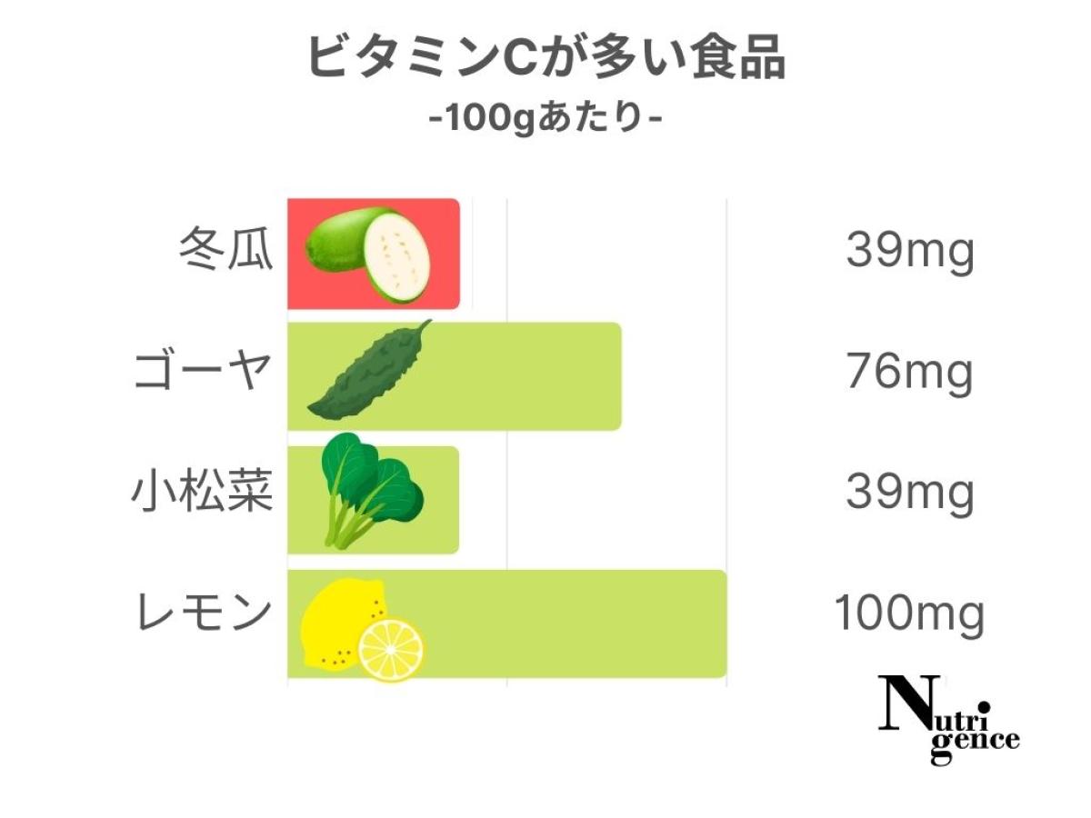 冬瓜以外にも野菜(ゴーヤや小松菜など)や果物(みかんやいちごなど)にもビタミンCは多く含まれています。