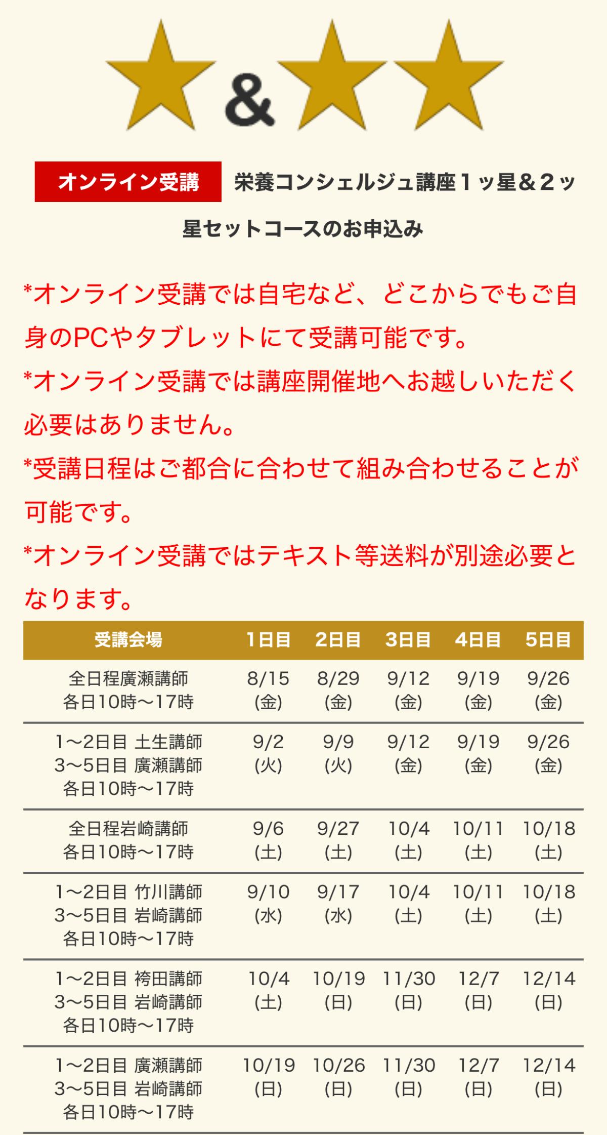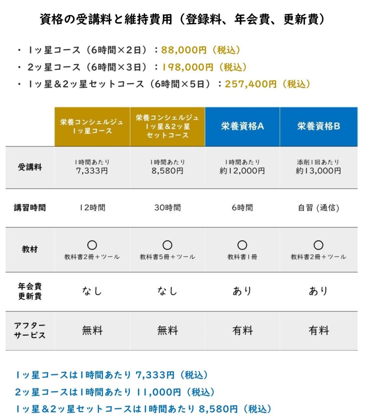 栄養コンシェルジュには1ッ星コースと2ッ星コースがあります。