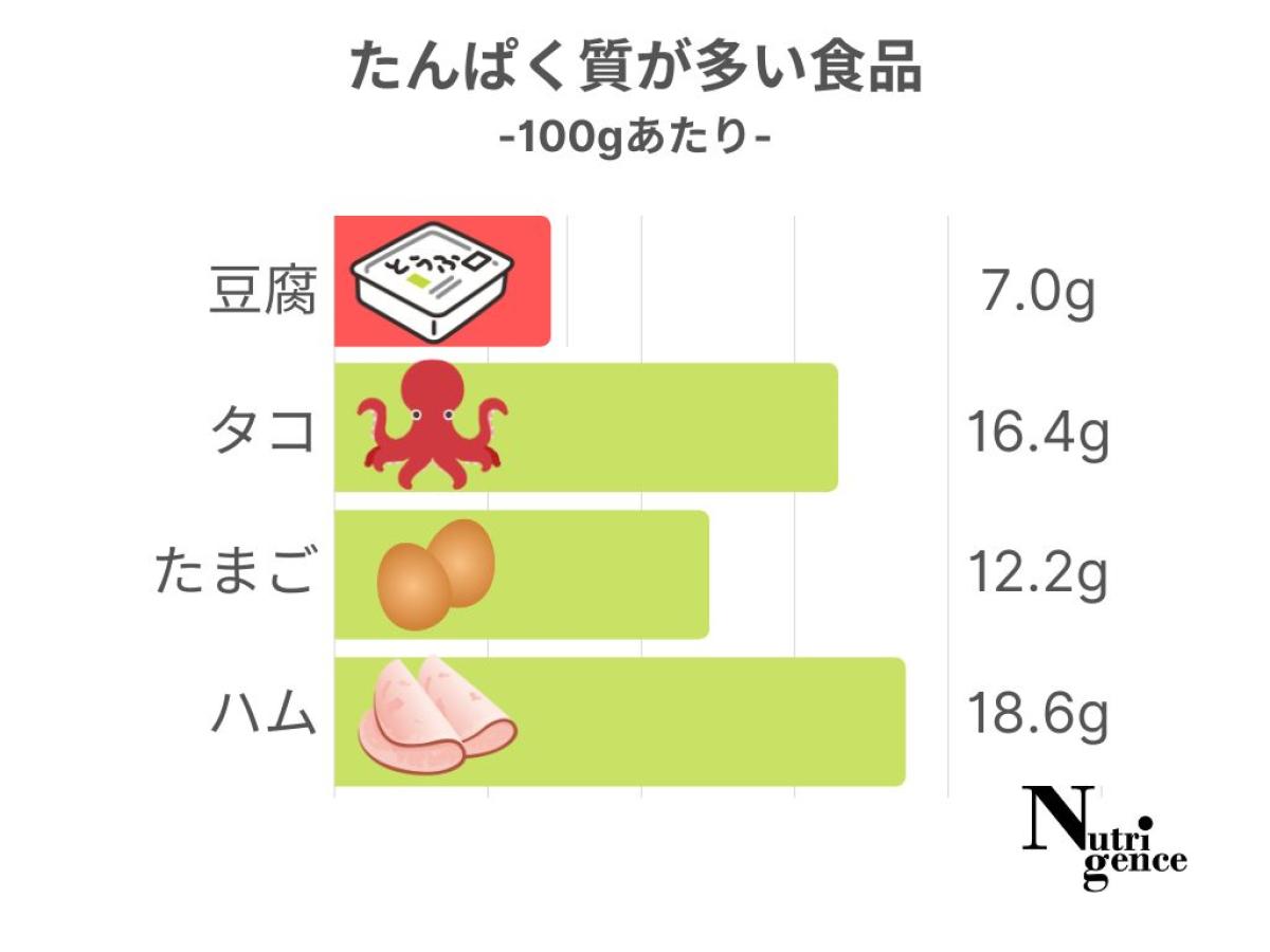 豆腐以外にも魚(アジやサバなど)や肉類(牛肉やハムなど)にもたんぱく質は多く含まれています。