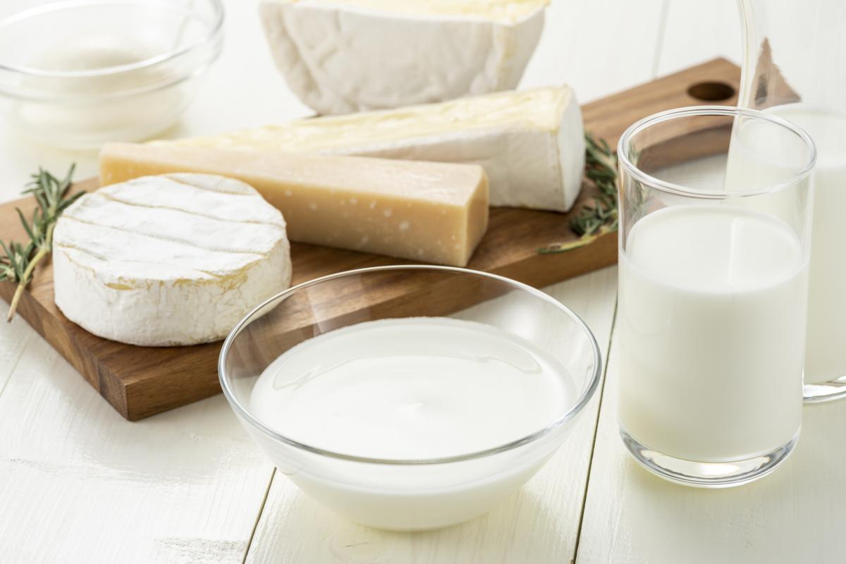 牛乳・ヨーグルト・チーズなど、乳糖・乳たんぱく・乳脂肪を豊富に含む食品が分類されます。