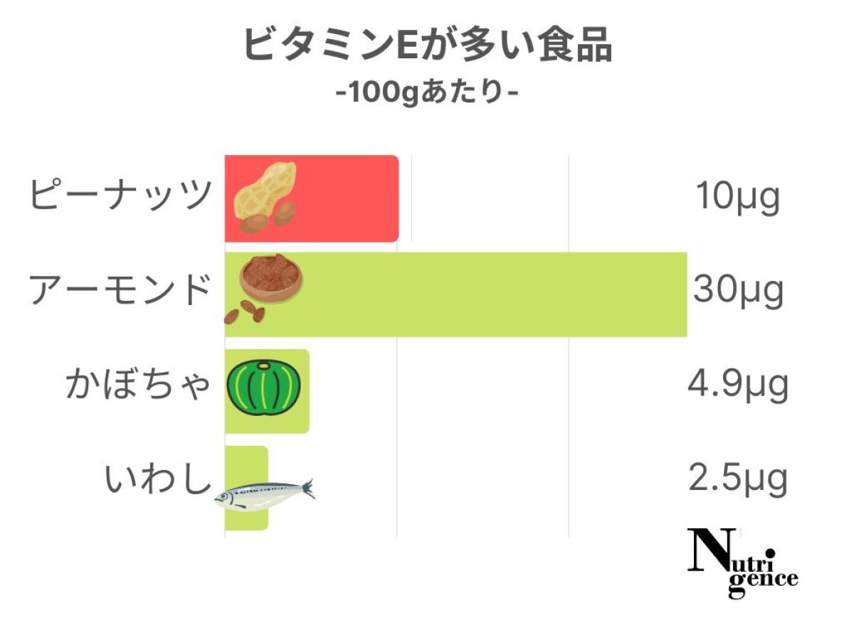 ピーナッツ以外にもアーモンドやかぼちゃにもビタミンEは多く含まれています。