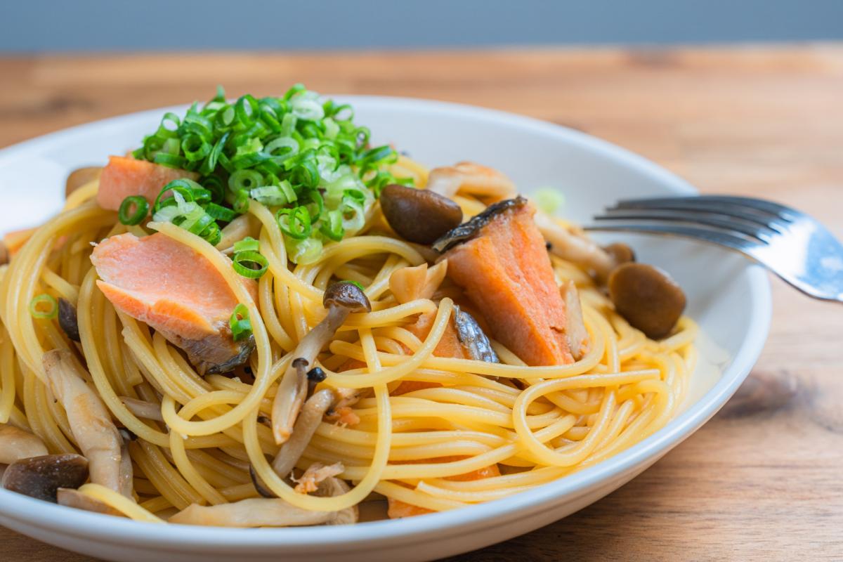 「鮭ときのこのパスタで、“主食・主菜・副菜”がそろいます!」