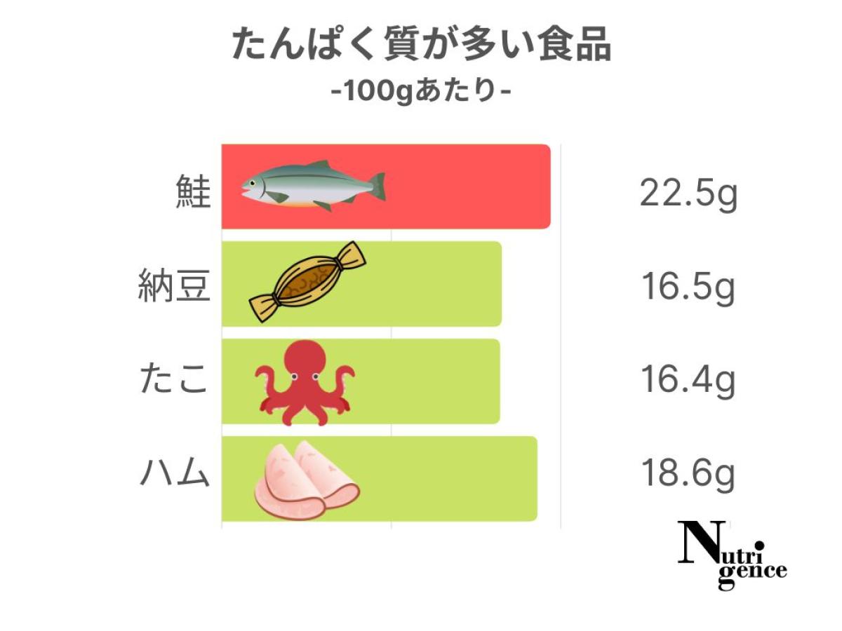 さけ以外にも大豆製品(豆腐や納豆など)や肉類(牛肉やハムなど)にもたんぱく質は多く含まれています。