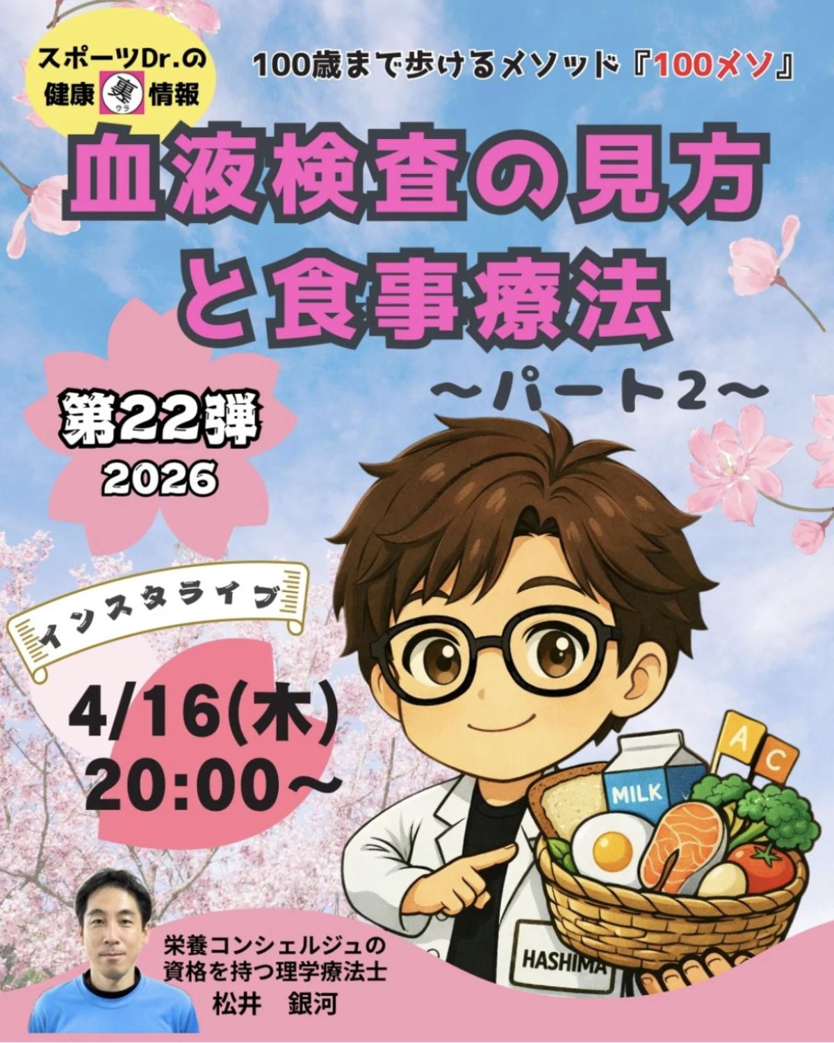 オンラインにて開催、インスタライブ『血液検査の見方と食事療法~パート2~』